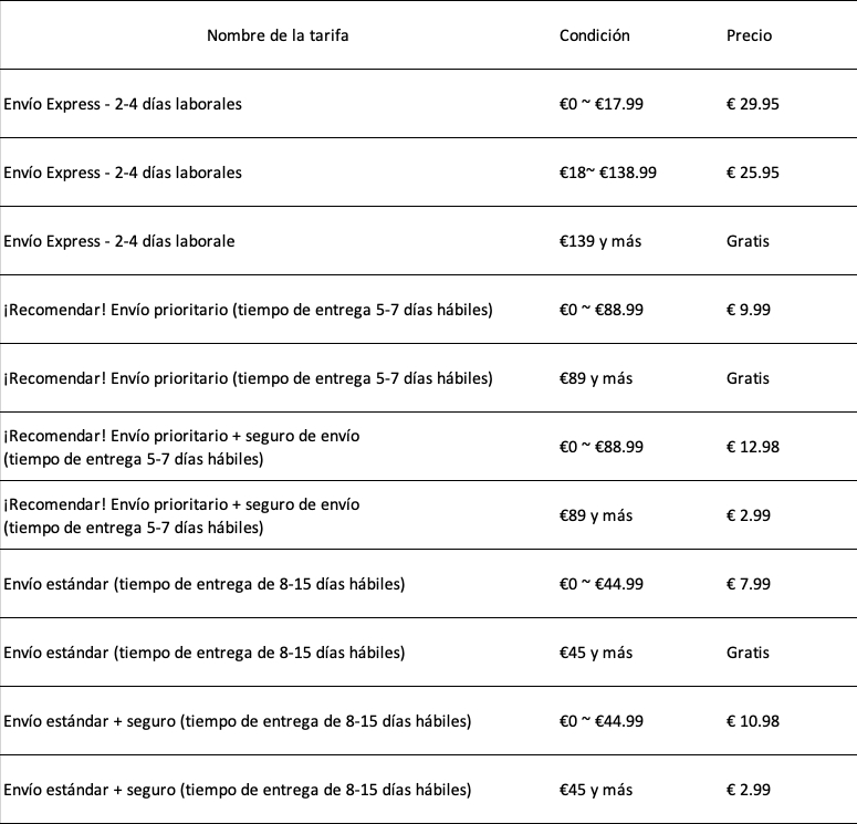 Tenga en cuenta que las fechas de entrega pueden cambiar debido a las inclemencias del tiempo o las vacaciones.