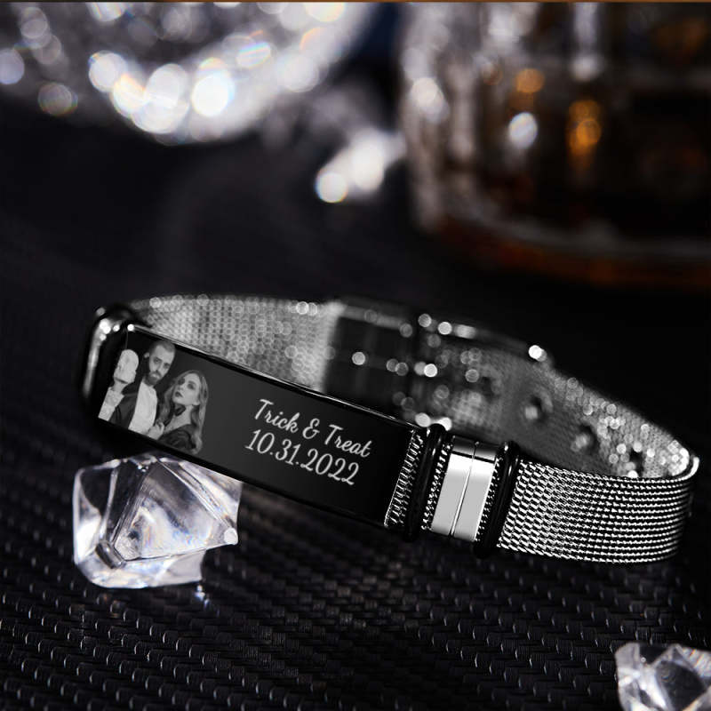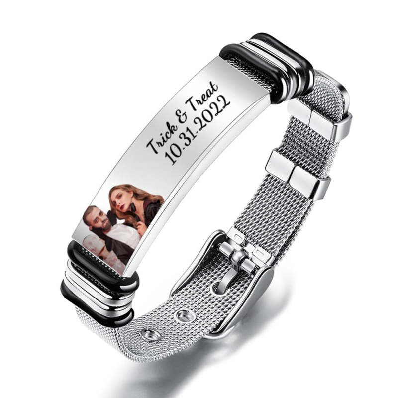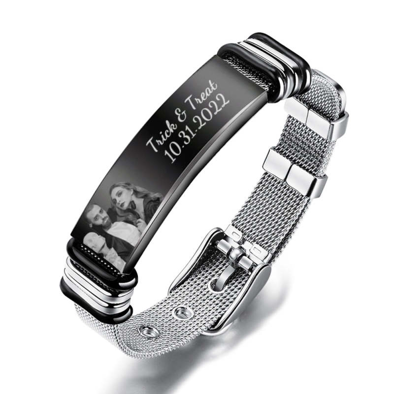 Pulsera De Acero Inoxidable Personalizada Para Hombre, Regalo De Aniversario Para Personalizar Tu Fecha Especial, Regalo De Halloween