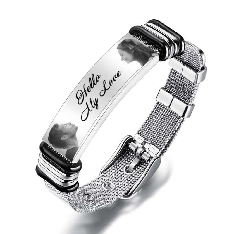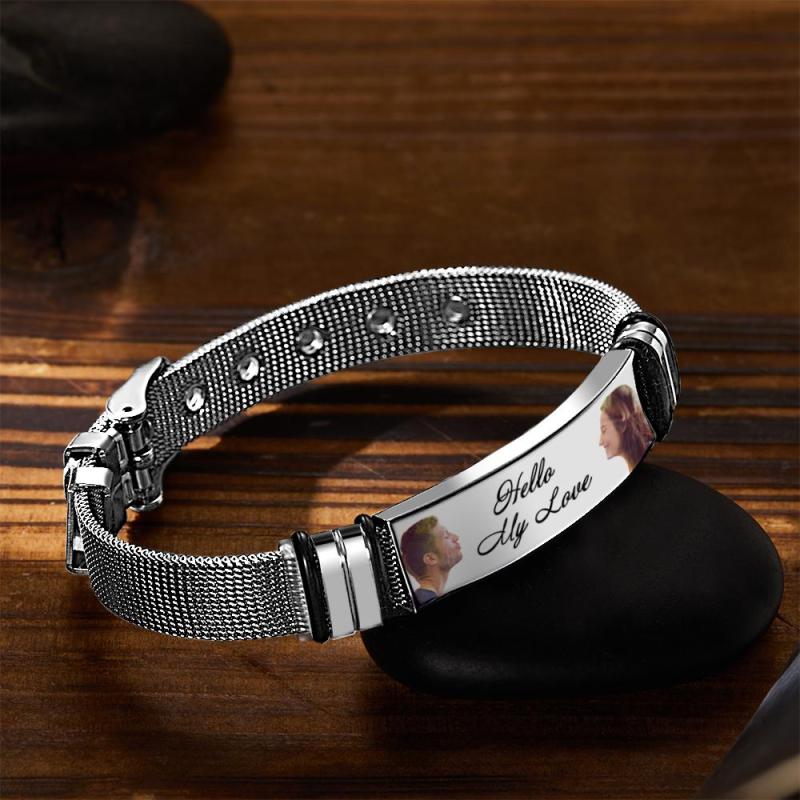 Pulsera Personalizada Para Hombre Con Doble Foto Y Palabras Grabadas, Los Mejores Regalos Para Su Ser Querido