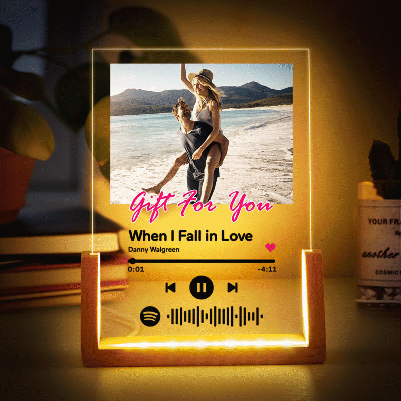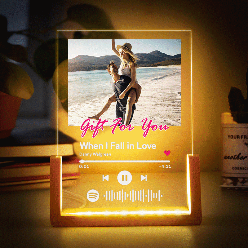 Luz Nocturna Con Foto De 7 Colores, Lámpara De Placa Con Código De Música Escaneable Personalizada De Spotify, Regalos Para Ella