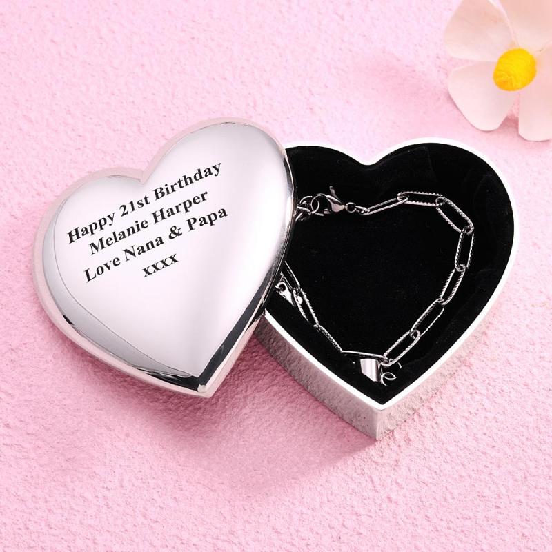 Caja De Anillo De Corazón Grabada Personalizada, Joyero De Metal Exquisito, Regalos Para Ella