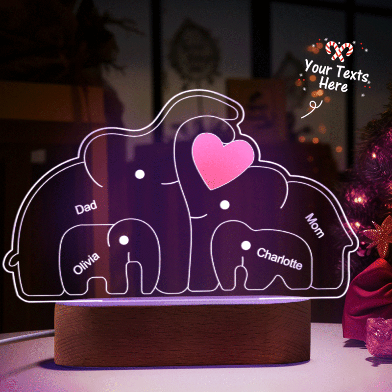 Nombres Personalizados Familia De Elefantes Lámpara Acrílica Luz Nocturna Personalizada El Mejor Regalo De Navidad