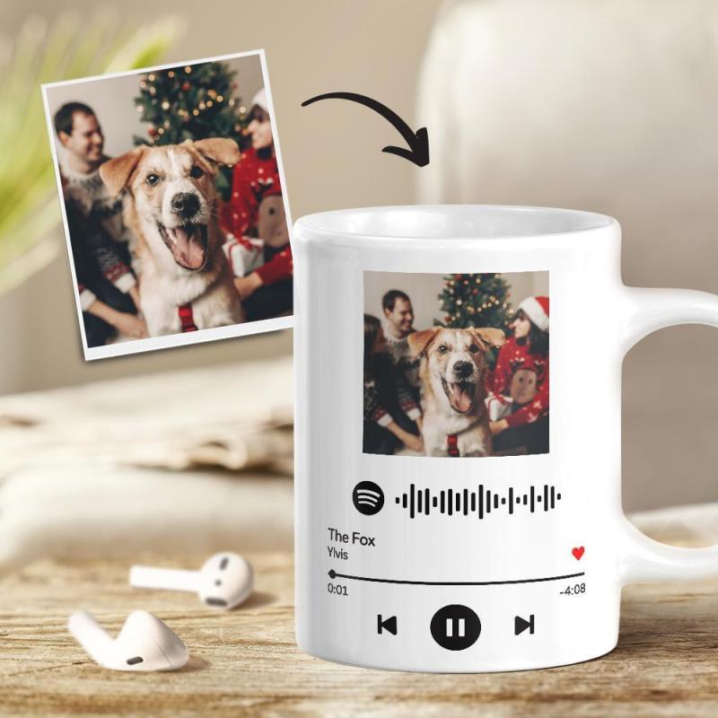 Taza con foto de código de Spotify escaneable personalizada para amantes de las mascotas